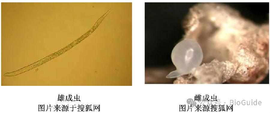 成虫:雌成虫和雄成虫形态差异显著。雌成虫呈梨形或球形,体长约0.4 - 1.3mm,体宽约0.3 - 0.8mm,无明显头部和尾部区分,体表光滑,通常固定在根结内,后端伸出胶质卵囊;雄成虫呈线形,体长约1.0 - 1.5mm,体宽约0.03 - 0.04mm,头部有发达的口针,尾部尖锐,具有交合刺,主要负责与雌成虫交配。